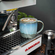 Jede Tasse wird von Hand gefertigt und erhält durch ihre Glasur in Meeresblau-Grau-Tönen ihren einzigartigen Charakter.