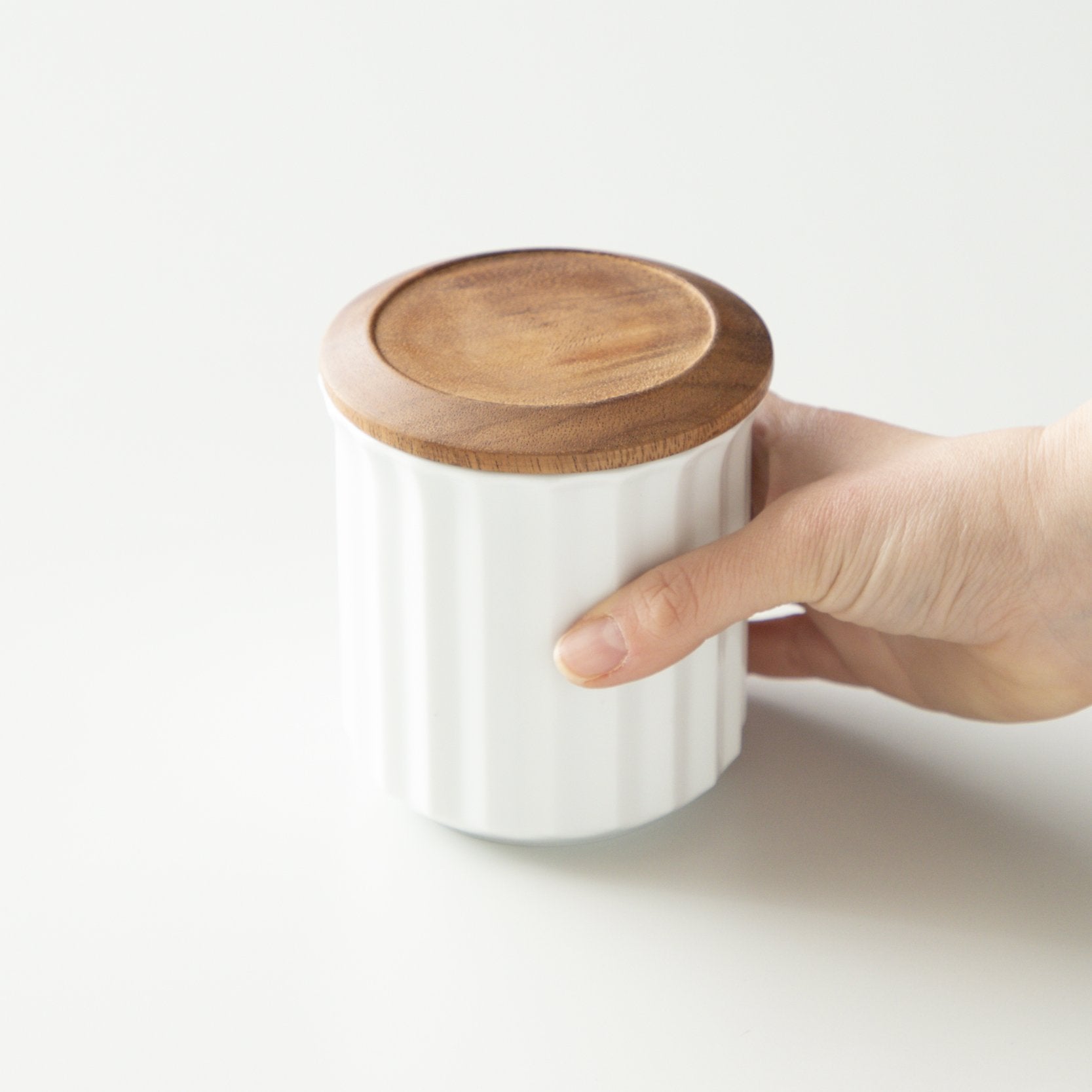Der Origami Canister wurde speziell für die Aufbewahrung von Kaffeebohnen entwickelt. Der hochwertige Porzellankörper schützt zuverlässig vor Licht, Hitze, Feuchtigkeit und Fremdgerüchen, während der passgenaue Holzdeckel aus Akazienholz den Inhalt luftdicht verschließt. So bleiben Aroma und Frische Ihrer Bohnen länger erhalten.