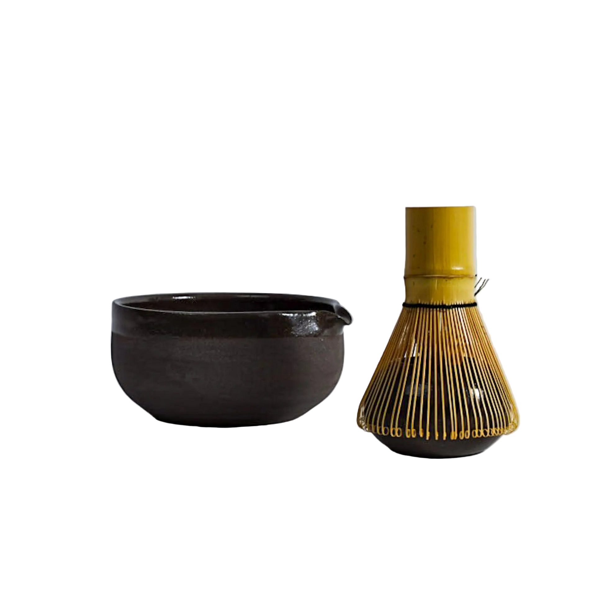 Matcha-Bundle Grau-Schwarz: Chawan & Besenständer – Minimalistisch & Handgemacht