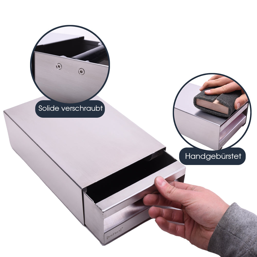 Die Sudschublade S Matt aus hochwertigem Edelstahl von JoeFrex ist das perfekte Zubehör für den Barista, der Wert auf saubere und effiziente Kaffeezubereitung legt. Mit ihrem minimalistischen Design fügt sich diese Sudschublade nahtlos in jede Kaffeeküche ein. Die gesamte Hülle sowie der Abschlagbehälter sind aus rostfreiem Edelstahl gefertigt und bieten nicht nur eine ansprechende Optik, sondern auch eine robuste, langlebige Qualität.