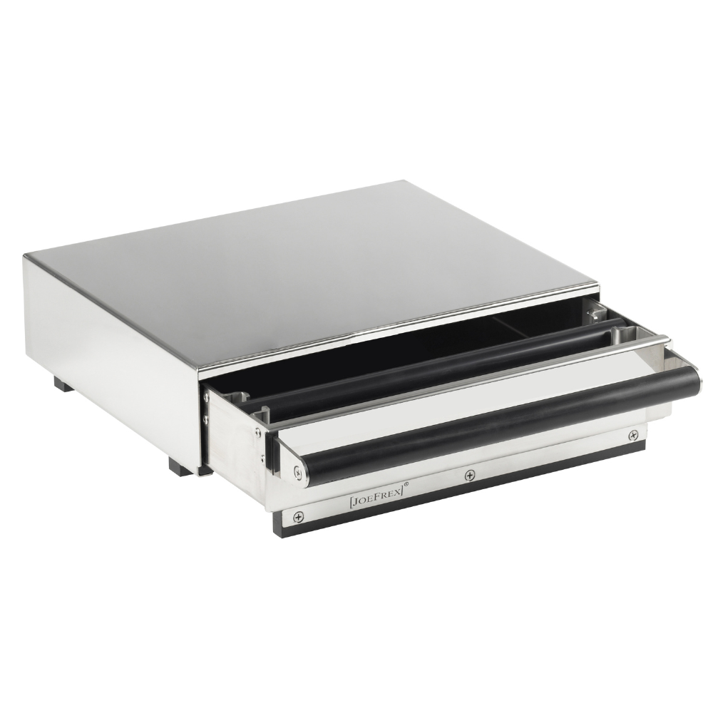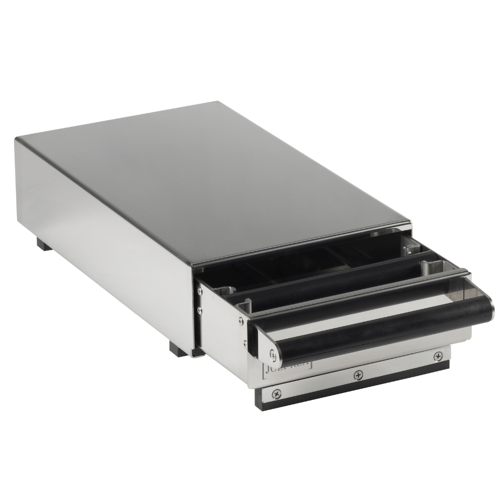 Auf diese Sudschublade passt die Mühle Mahlkoenig K30 Twin perfekt. Die Details machen deutlich, dass diese Sudschublade für die Bar und den professionellen Einsatz konzipiert wurde, aber auch für den Profi zu Hause geeignet ist.